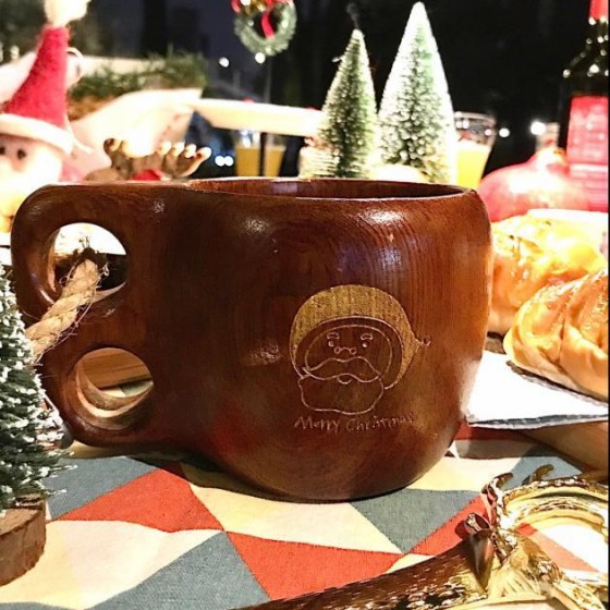 原木木作杯碗-聖誕老杯杯款