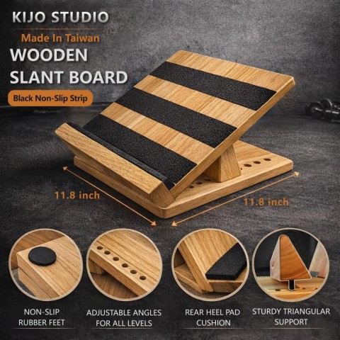 Wooden Slant Board -Black Non-Slip Strip