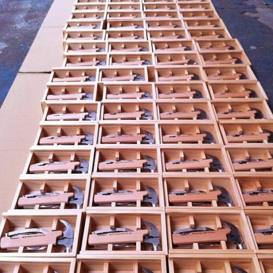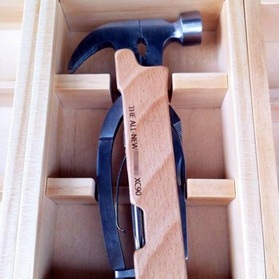 客戶提供金屬工具組件及設計概念,由木城工坊KIJO設計製作木製把手結合曲面及木盒包裝。